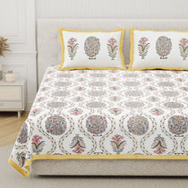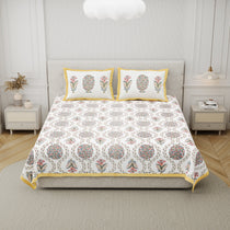 100% Cotton Block Print Bedsheet - Yellow Tree