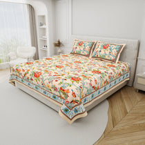 100% Cotton Block Print Bedsheet - BIrd