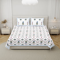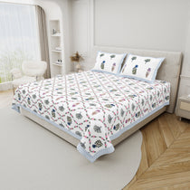 100% Cotton king size Block Print Bedsheet 90x108" - Mosiac of flowers