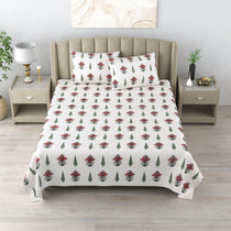 100% Cotton Block Print Super King size Bedsheet - Red Booti