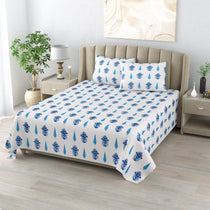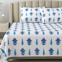 100% Cotton Block Print Bedsheet - Blooming Blue Booti