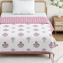 Reversible Hand block print cotton Mulmul Single size Dohar - Pink Flower