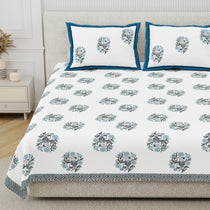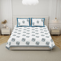 Cotton Hand Block Print Bedsheet Set - Wings-blue